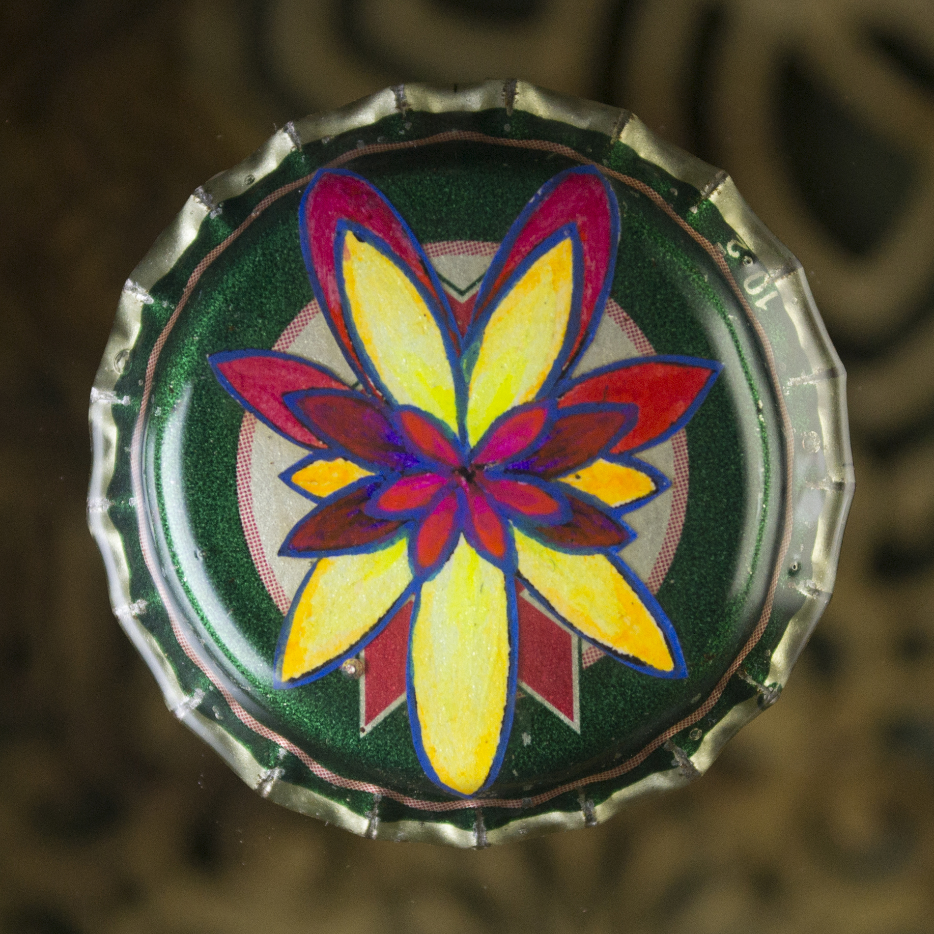 El diseño es la yuxtaposición de la hoja de marihuana de manera que cree un tipo de mandala dinámico. Quedó muy bien sobre el diseño de la misma cocholata, que hace pensar que tiene un par de hojitas más.